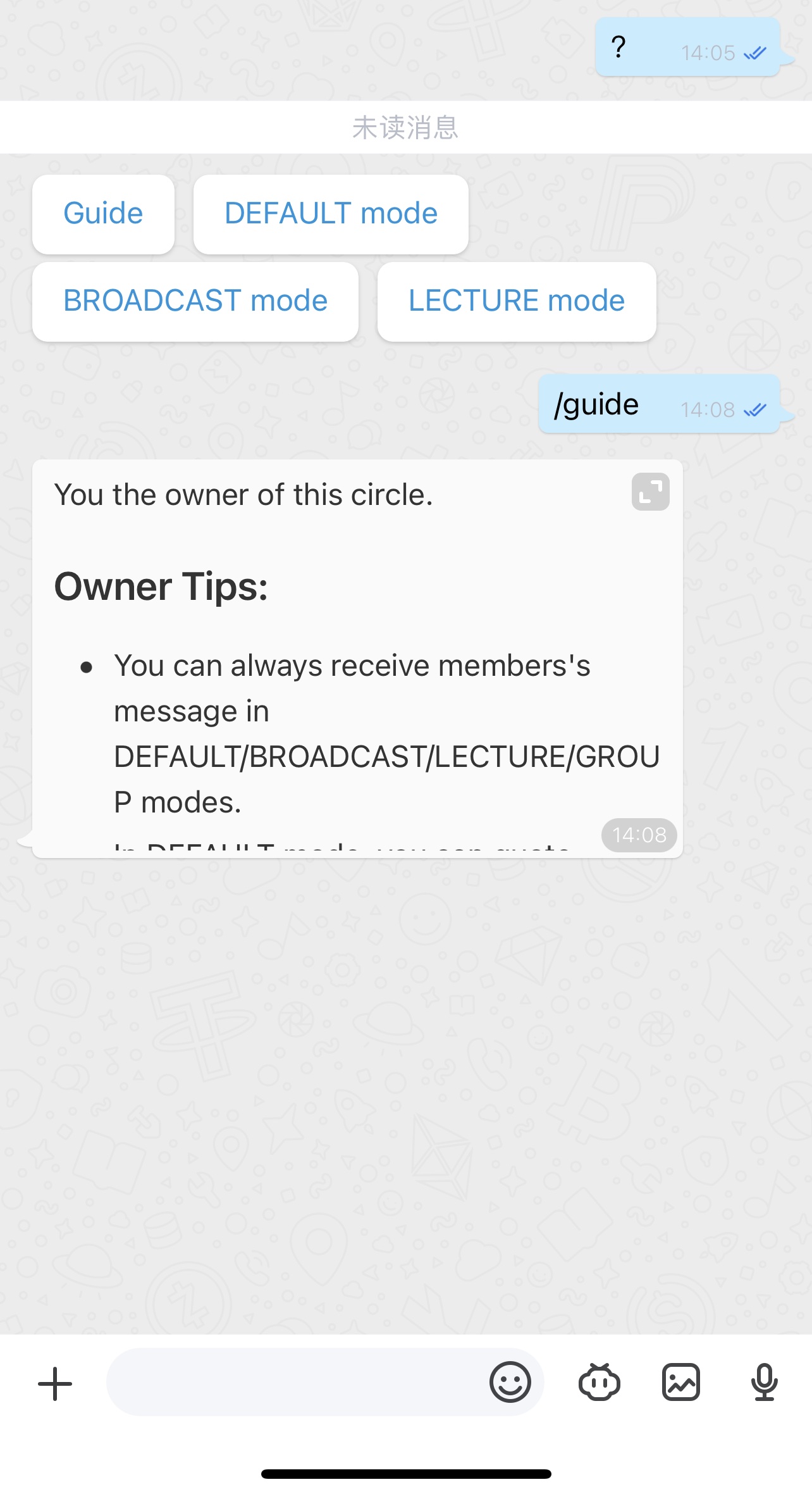 You may always send the question mark ? to your Bot (hosted by OhMy.xin) to start and it will repond with some usefull command options.