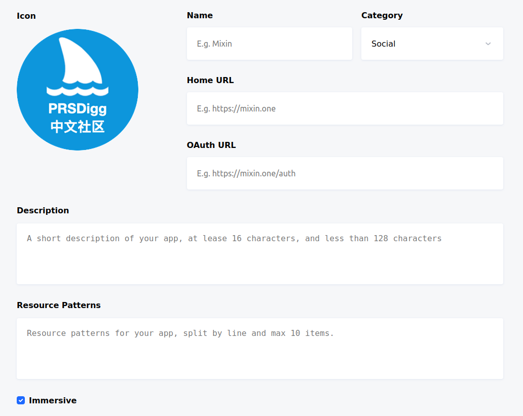https://mixin.oneas Home URL and OAuth URL, and edit them later with the urls provided by OhMy.Xin. - The characters count of Description must be between 16 ~ 128